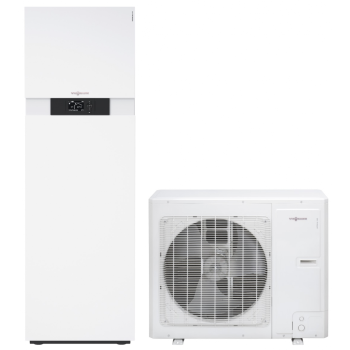 Les pompes à chaleur air/eau Viessmann sont un choix idéal si vous êtes à la recherche de performance et de confort. Avec des puissances comprises entre 4kW et 16kW, la pompe à chaleur Vitocal 111-S répond à toutes les exigences en matière de chaleur et de production d'eau chaude sanitaire. Grâce à son design compact la pompe à chaleur Vitocal 111-S peut-être installée dans la cave ou la buanderie pour la partie intérieure. L'unité extérieure peut-être fixée au mur extérieur du bâtiment avec les accessoires adéquats ou bien sur le sol. La pompe à chaleur Vitocal 111-S dispose d'un préparateur d'eau chaude sanitaire de 220L pour un confort optimal. A la pointe de la technologie avec une télécommande, cette pompe à chaleur durera dans le temps grâce à la solidité des matériaux utilisés comme la couche de protection de l'évaporateur, prévue pour protéger contre la corrosion. La pompe à chaleur Vitocal 111-S utilise un fluide frigorigène R32, plus respectueux de l'environnement. Un produit répondant à toutes les exigences.