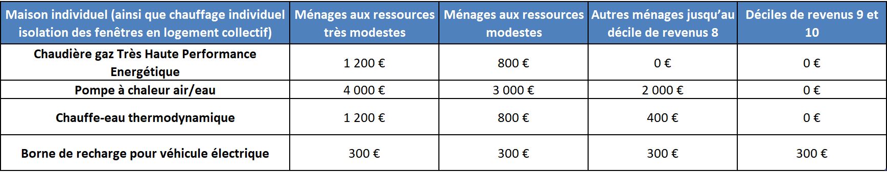 plus efficace dans son mode de versement et l’attribution du montant délivré. Plusieurs critères sont pris en compte : la performance énergétique de l’équipement et les revenus des ménages. Cette prime cumulée à d’autres aides peut permettre d’atteindre jusqu’à 90% du montant des travaux de rénovation.