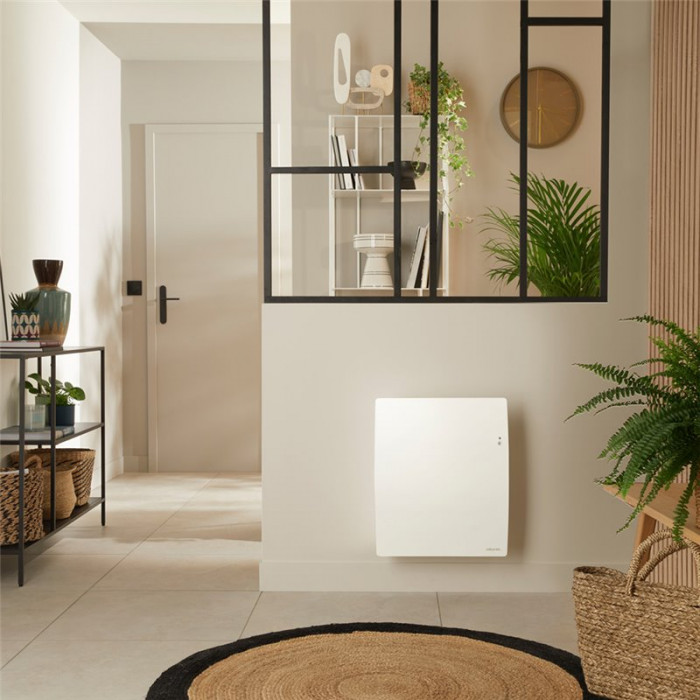 Le radiateur électrique Atlantic Agilia horizontal 500 W est le radiateur connecté le plus compact du marché. Son pilotage intelligent, vous permettra de faire 45% d'économies sur vos factures. La connectivité de l'appareil se traduit également par son pilotage à distance grâce à l'application Cozytouch et son s'adaptation à votre vie. Son petit format vous permettra de la placer dans les espaces les plus restreins avec sa largeur de 45 cm pour le format horizontal. Avec sa façade blanche mate texturée, il vous fera profiter f'un confort optimale grâce à la combinaison de ses 2 corps de chauffe. La fabrication en France du produit vous garantit une qualité optimale.