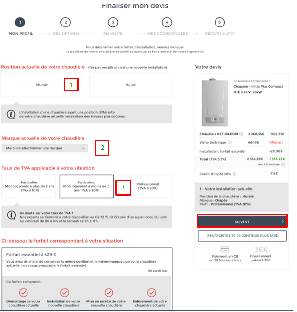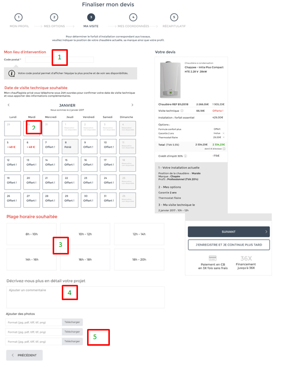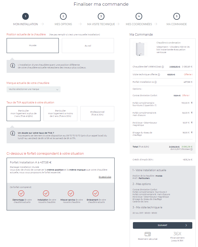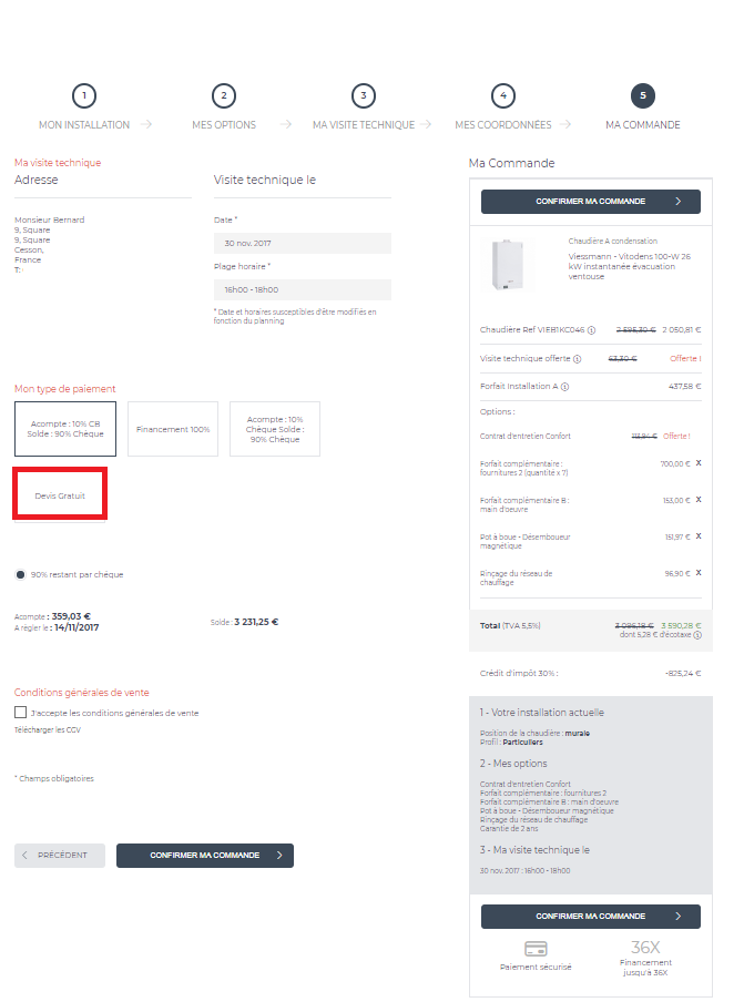 Si suite à votre visite technique, vous n'avez rien à modifier, allez directement sur la dernière étape choisissez le bon mode de paiement