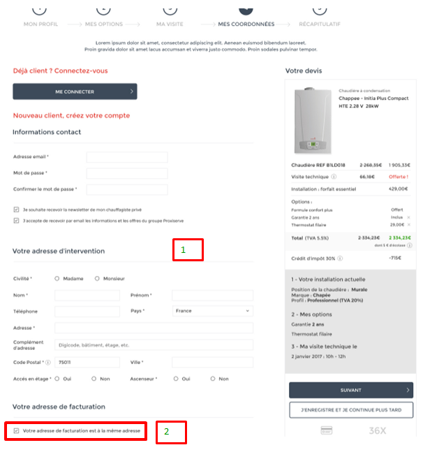 vous devrez remplir les informations du client si elles ne sont pas déjà renseignées (si le client est connecté sur son compte).