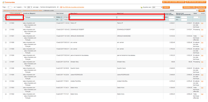 Vous voilà sur la page des commandes attribuées à votre agence. Ici vous pourrez rechercher votre client via son code commande ou via son nom.