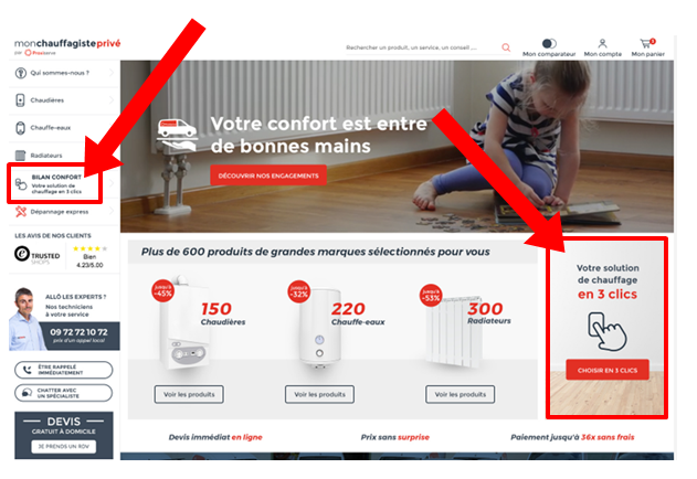 Se rendre sur monchauffagisteprivé.com. Sur la page d’accueil deux moyen d’accéder à l’outil.